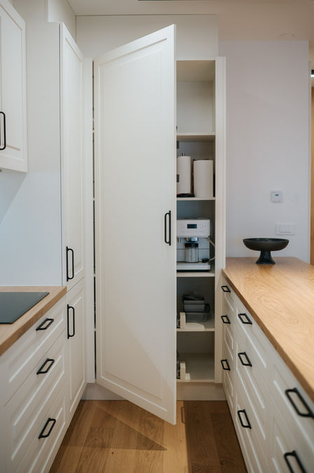Kod projekta opremanja stana B, osim vrhunskog namještaja po mjeri - radili smo i skrivena te sobna vrata za cijeli stan.
